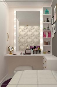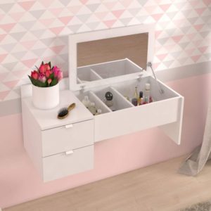 Móveis que não vão até o chão ampliam o ambiente e deixam super moderno. Você pode usar escrivaninhas e penteadeiras suspensas, com certeza seu espaço ficará lindo e parecendo maior do que realmente é.